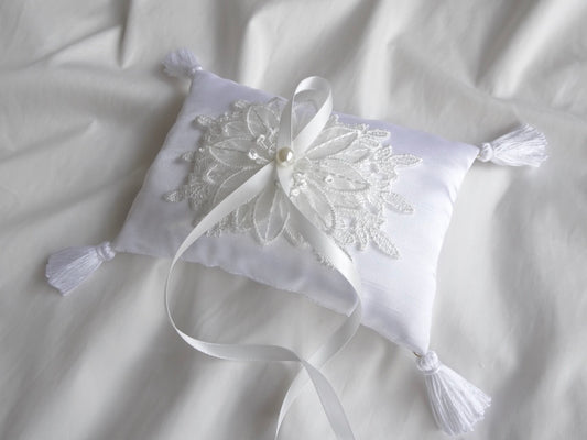 【手作りキット】フラワーモチーフレースリングピロー ホワイト