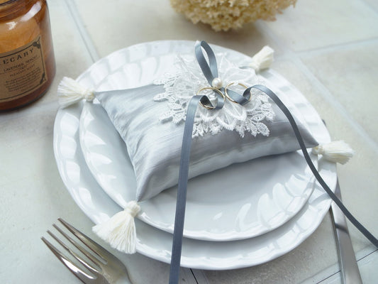 【手作りキット】フラワーモチーフレースリングピロー グレー