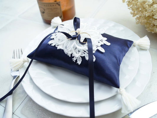 【手作りキット】フラワーモチーフレースリングピロー ネイビー