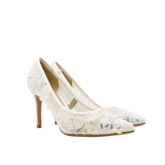 【レンタル】ヒール9cm│24.5cm シースル―フラワーパンプス